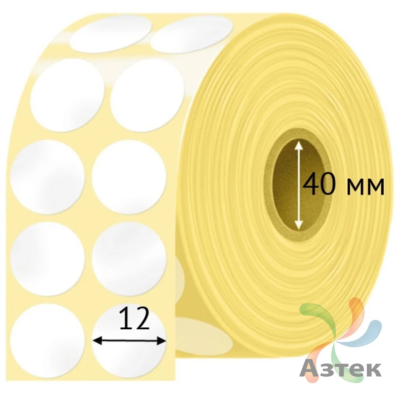 Этикетка самоклеящаяся круглая 12 мм (рядов 2 по 1 000 шт) Полипропилен матовый в рулоне, втулка 40 мм (к) IQ code
